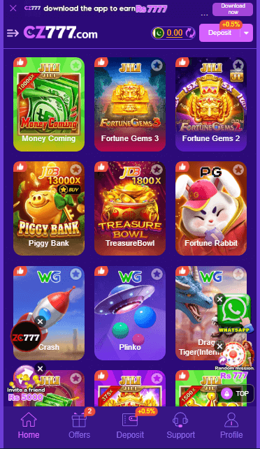 CZ777 gives daily bonuses, referral bonuses, and welcome rewards. Instead of spending them quickly, use these bonuses only on games where you have higher control like Teen Patti, Ludo, or card games. - Play Games That Match Your Strength